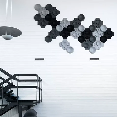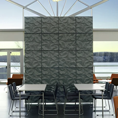 3D Acoustic Panels bring a sculptural dimension to sound management. Using advanced hot-pressing technology, 100% polyester fibers are molded into striking geometric patterns that offer both tactile beauty and superior acoustic diffusion.