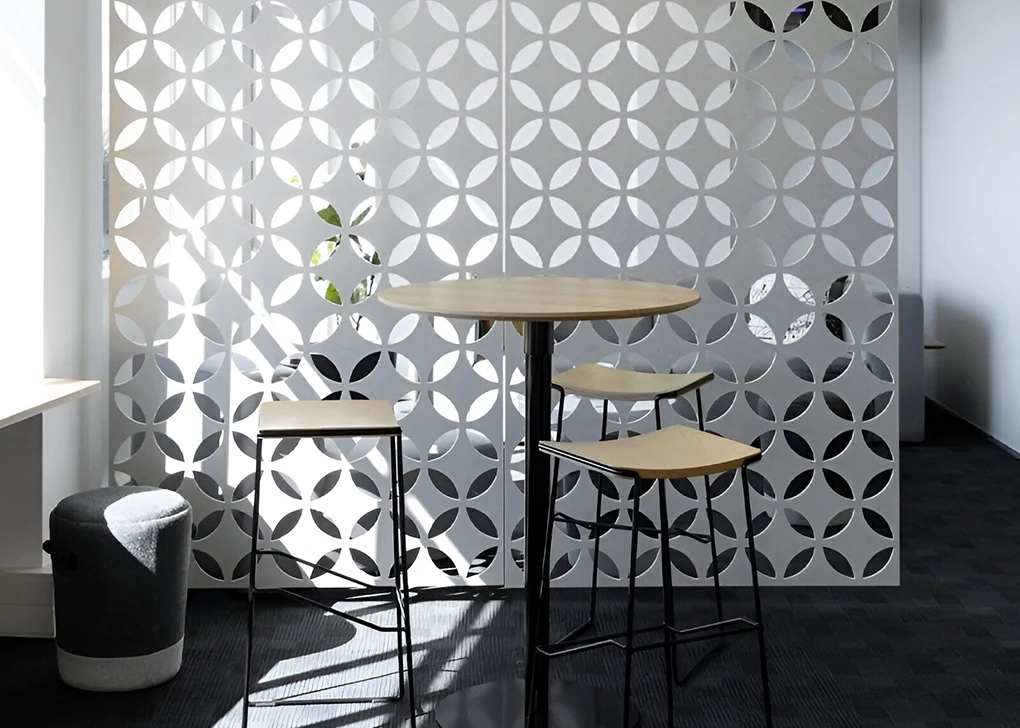 Designed as semi-transparent architectural elements, carved panels function as both acoustic treatments and spatial dividers. Their decorative patterns add depth and identity to interiors, making them well suited for cafés, offices, and shared spaces where privacy, openness, and sound comfort must coexist.
