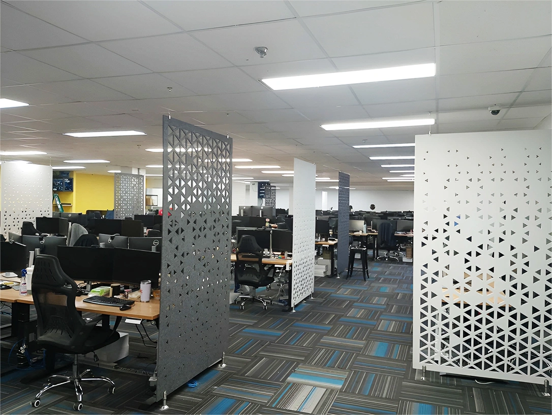 Carved Acoustic Panels combine sound control with visual separation, using patterned cutouts to shape both acoustics and space. By breaking up sound reflections while allowing light and air to pass through, these panels create quieter, more comfortable environments without fully enclosing an area.